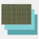 Gift Giving Package Wrapping Paper set of 2 sheets in shades of solid colors and 1 sheet printed with a Circular, Linear And Tapered Shapes Abstract Art four part mirrored image repeating pattern original graphic design illustration by TheFabricSeal at Zazzle #ZazzleMade https://www.zazzle.com/store/thefabricseal