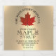 Detailed red sugar maple leaf on gold gradient background. Your name in bold curved text around leaf.