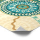 © Veronique Charron / Wild Apple. This image of circular patterns feature blue and gold colours. The image has a tan coloured, floral patterned background.