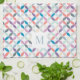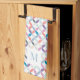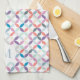 Bold graphic kitchen towel in shades of coral orange, beige, teal green blue, pale aqua, purple and white in a circles style design with a monogram in blue on white. Ideal for adding some interest in your kitchen. This design has plenty of different tonal colours to help with your colour co-ordination and a monogram for a personalised touch. Graphic and design by www.myittleeden.com