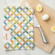 Bold graphic kitchen towel in shades of burnt orange, teal green blue, olive green, sap green, muted blue and white in a circles style design with a monogram in orange on white. Ideal for adding some interest in your kitchen. This design has plenty of different tonal colours to help with your colour co-ordination and a monogram for a personalised touch. Graphic and design by www.myittleeden.com