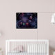 An illustration of infinity, crossing the universe to combine the microscopic and the telescopic in a rainbow display of shapes and colours. A column of multi-coloured atoms of blue, pink, red, and green circled by silver rings, spiralling across outer space against a backdrop of colourful fractal galaxies.
