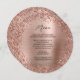 A circular border of faux rose gold glitter against a rose gold and blush pink metallic style foil digital art background.