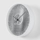 Faux silver circular glitter border and metallic silvery grey foil digital art (prints like a photo on these wall clocks).