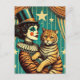 A cute circus clown wearing a tiger print jacket and holding a tiger coloured kitty cat AI generated art