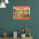 Vintage Barnum & Bailey circus poster showing people in costumes, including clowns, performing at the beach, circa 1898.  The Barnum & Bailey Greatest Show on Earth. The Great Coney Island Water Carnival.