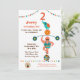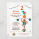 This modern and colourful birthday invitation is ideal for a birthday party with a circus theme. It features a circus acrobat on a bicycle, balancing a ball and an elephant that’s holding the number two. Small details such as a pennant banner and a bunny coming out of a hat, add to the festive look of this design. The colour palette is unisex and trendy. This eye-catching card is perfect to celebrate baby's memorable second birthday.