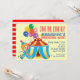 A circus tent and clown invitation that is sure to please. Bright colours and playful design make a perfect circus theme.