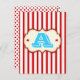 A great DIY product to personalise your carnival party! Red and white stripe background with an old fashioned letter style in bright blue. Spell out "Happy Birthday", your child's name, or any other message by creating one card per letter of each word you want to create. Then use a hole punch to make a small hole in the upper corners and string the cards onto a length of pretty ribbon or twine. Voila!