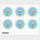 This circus themed sticker features a blue background surrounded by a repeating patter of red, blue, yellow and green stars. A juggling circus monkey standing on a circus ball sits in the middle of the plate.
