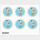 This circus themed sticker features a blue background surrounded by a repeating patter of red, blue, yellow and green stars. A cute circus elephant stands on a circus ball in the middle of the sticker.