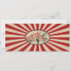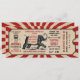 Fun vintage birthday party ticket invitations. Change between admission ticket or customise for a raffle prize ticket. Red big-top burst pattern, elephant and ringmaster vintage artwork on back. Easy to customise.