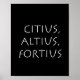 Citius altius fortius. Faster, higher, stronger. A latin quote of wisdom and philosophy that is still valid and true today.