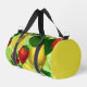 This duffle bag features a vibrant citrus and berry pattern with lemons, oranges, limes and fresh berries arranged on a bright turquoise background. The lively color palette creates an energetic, summery look that feels refreshing and fun. With its spacious interior, durable construction and comfortable straps, this bag is perfect for weekend trips, gym days, beach outings or travel. A bold and cheerful accessory for anyone who loves fruity, colorful designs.