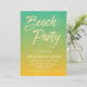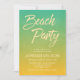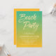 This citrus Beach Party invitation features a green and light orange gradient background which has a subtle grunge/weathered look to it with the word "Beach Party" in a trendy brush script font. The vibrant citrus colors makes this a great invitation for a birthday, anniversary or any celebration at the beach.