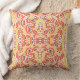 Orange, yellow, and red throw pillow with an abstract design inspired by citrus fruits.