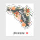 Rep your home state or favourite vacation spot with this cute Florida contour sticker featuring a silhouette map of the state adorned with colourful tropical flowers, green foliage, and juicy oranges. The name of the state is inscribed inside in hand lettered script.