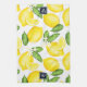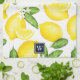 This design features a citrus lemon pattern with a monogram navy square on each edge