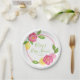 Customisable Citrus Lemon Floral Baby Shower Lemon Roses paper plates in green, pink, yellow details. Edit all text, font and colours. See complete Collection for more matching items.