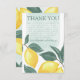 This Lemon themed thank you card is designed to match our Lemon collection! This theme is perfect for any gender, boy or girl, with soft tones of yellow and green. This design features watercolor lemons with an arch accent. The backside features matching lemons and greenery perfect for spring or summer.