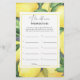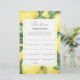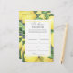 Watercolor lemon citrus theme bridal shower card featuring watercolor illustration of lemons pattern and greenery branch. Elegant calligraphic handwriting, which is perfect for spring, summer or autumn weddings. Matching items available.