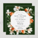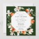 Celebrate the mom-to-be with this elegant citrus floral baby shower design, featuring hand-painted orange blossoms, white magnolia flowers, and lush greenery on a deep green background. The modern octagon frame highlights your event details with a clean and sophisticated look.