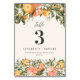 Citrus orange botanical modern rustic wedding table number design. Part of a modern collection.
