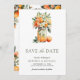 Amaze your guests with this elegant save the date featuring beautiful oranges and modern typography. Simply add your event details on this easy-to-use template and adorn this card with your favourite photo to make it a one-of-a-kind save the date card.