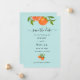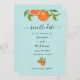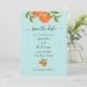 Trendy and Elegant Orange citrus fruit watercolor Save the date card. Invitation feature watercolor illustrations of orange fruit and leaves on a pale aqua background. Great for summer weddings.