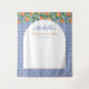 Fabric backdrop to use as a party welcome sign and/ or photo backdrop. The design features watercolor oranges / leaves / white blossoms against a blue and white vintage tile border. I have invitations and other stationery in the same design (please see collection). Shown here for a Bridal Shower but all of the text can be customised to your needs. You can also add or delete text fields from inside the design tool.