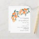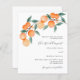 A white background. Decorated with watercolored oranges. Personalise and add a name and party details.