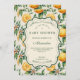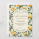 A fresh and cheerful baby shower design inspired by sunny citrus orchards. Bright lemons, delicate blossoms, and soft green leaves frame a classic scalloped centerpiece, creating a warm and inviting look. Perfect for spring and summer celebrations, this design blends natural charm with elegant typography for a timeless feel. A beautiful choice for honouring the mother-to-be in a vibrant, joyful setting.