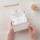 All-in-one card includes wedding invitation, details, an engagement photo, and a self addressed RSVP card that your guests rip off and mail back to you. Personalise the cover with your names and wedding date framed by lush citrus floral greenery. This "roomy" invitation is a great way to give your guests additional information on the wedding. These cards can list the festivities surrounding your wedding weekend, such as welcome cocktails, after-parties, and morning after brunches. If you’re planning a destination wedding, all-in-one invitations are a great way to provide information to your guests about local hot spots and area attractions to help them make the most of their travel plans.