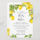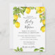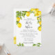 Watercolor lemons, leaves, and flowers, wedding invitation. Customise font style, colour and size.