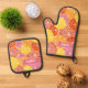 Citrus Pattern - Custom Name - Pink Orange Lemon Oven Mitt & Pot Holder Set