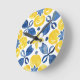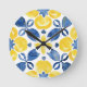 Brighten your home with the cheerful charm of this citrus pattern wall clock. Featuring a vibrant watercolor design inspired by classic Mediterranean ceramics, this clock showcases hand-painted lemon motifs, rich indigo leaves, and stylized blossoms arranged in a lively repeating pattern. The fresh yellow-and-blue palette brings sunny, coastal energy to any room. A perfect blend of art and function, this eye-catching clock adds a refreshing pop of color to kitchens, dining rooms, patios, or anywhere that could use a touch of brightness.