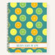 Lemon, lime and orange slices decorate this teal blue notebook perfect for school, home or work which can be customised with ANY name or phrase. Choose your paper type, spine colour and more!