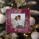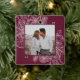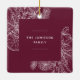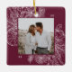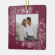 A modern and elegant holiday ornament that frames your favourite square photo in a beautifully detailed frame with pine boughs, winter leaves, star anise, and citrus slices on a rich burgundy plum background. Personalise the back of this unique Christmas photo ornament with your family name.