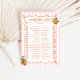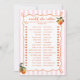 Introducing our enchanting Spritz themed 'Would she rather' game card, designed to make your special day even more memorable. This design features an orange hand-drawn doodle frame on a soft pink striped background. Adorning the frame are watercolor oranges, as well a hand drawn, whimsical orange slice, adding a touch of playful elegance to the design. The handwritten font beautifully complements the artistic frame, creating a cohesive and charming look that will captivate your guests from the moment they see it.