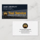 A search light shines bright thru the city block. In its sight is a gold taxi logo you can use alongside the business name and its contact details. Over at the top corner lies your prestigious name, the job title and a slogan caption option to publicise your services.