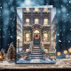 Personalised Christmas card. Ai illustration of a festive Brownstone city apartment in the middle of the city. Send someone city greetings with this cute city Christmas card.