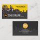 A creative city block silhouette design with the background building displaying the rush hour crowd, all waiting to board a taxi. This is set against a bright yellow sunny sky. Your prestigious name and job title is displayed here. Southwards to the base is the gold taxi logo you can use alongside the contact details and a slogan caption "taxi for hire". You can change the caption to suit your service needs.