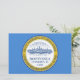 This design features the flag of Boston, which is the capital and most populous city of the Commonwealth of Massachusetts in the United States. It is the seat of Suffolk County and the most populous city in New England. The city is the economic and cultural center of a substantially larger metropolitan area known as Greater Boston. The flag of Boston consists of a sky blue field and the seal of the city of Boston, Massachusetts, in the center. It was first designed in 1913 and adopted by Boston City Council in 1917. The motto contained within the seal is made up of the Latin words "Sicut Patribus Sit Deus Nobis", meaning "God be with us as he was with our fathers".