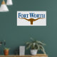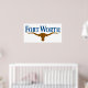 This design features the flag of Fort Worth, which is one of the largest cities in the U.S. state of Texas. It is the county seat of Tarrant County. The city of Fort Worth was established in 1849 as an army outpost on a bank of the Trinity River. Fort Worth has historically been a centre of the Texas Longhorn cattle trade. Although considered by some to be a satellite city due to its proximity to Dallas, which has held a population majority since the 1950s, Fort Worth has become one of the fastest-growing cities in the United States in recent years, particularly in the 21st century.