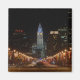 This is City Hall in Philadelphia, Pennsylvania. The photo was taken looking southeast down the Benjamin Franklin Parkway. The Ben Franklin Parkway runs from the Philadelphia Museum of Art at one end to Love Park and City Hall at the other and is lined with the flags of many countries from around the world. Philadelphia City Hall is a gem of cityscape architecture, and the building looks beautiful lit up at night. It is topped with a statue of William Penn, and until the mid-eighties, it was the tallest building in Philly. City Hall is at the heart of downtown Philadelphia, also known as Centre City.