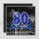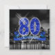This classy design features a giant, blue faux-glitter '80', script text 'Elegant' on a ribbon banner over a black and white photograph of a bright city skyline reflected on water. Search ID191 to see other ages and more products with this design.