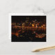 A photograph of Pittsburgh, Pennsylvania at night. The sky is solid black and there are gold lights shining from the buildings, reflecting off the river's water. This picture was taken from the top of Mount Washington during the summer.