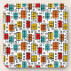 A colourful original retro-modern style design made up of rectangular leaf like motifs with offset colour rectangles.