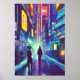 Two person walk down the street in a city at night, with a lot of light coming from the building around the street the person walking down. This is a AI generated art.