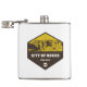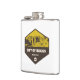 The flask itself is fine. It’s a cheap flask, obviously bought in bulk, however am prepared to overlook that. Given that it is a personalized item, I would have liked to have seen gift boxing instead of the generic packaging. Terrible printing, and/or quality. It’s a cheap, tacky vinyl. It is not cut straight and is also applied in a way that it is overhanging the bottom, causing the glue to catch on items and it will eventually roll and tear, damaging the wrap.